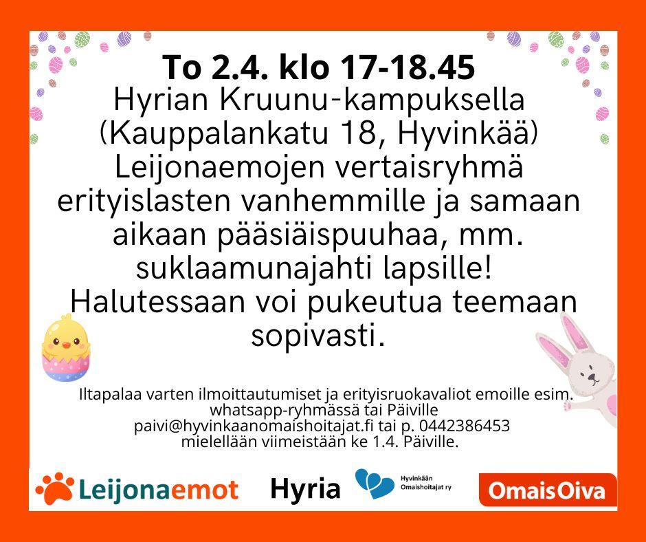 Leijonaemojen vertaisryhmä vanhemmille ja pääsiäispuuhaa lapsille