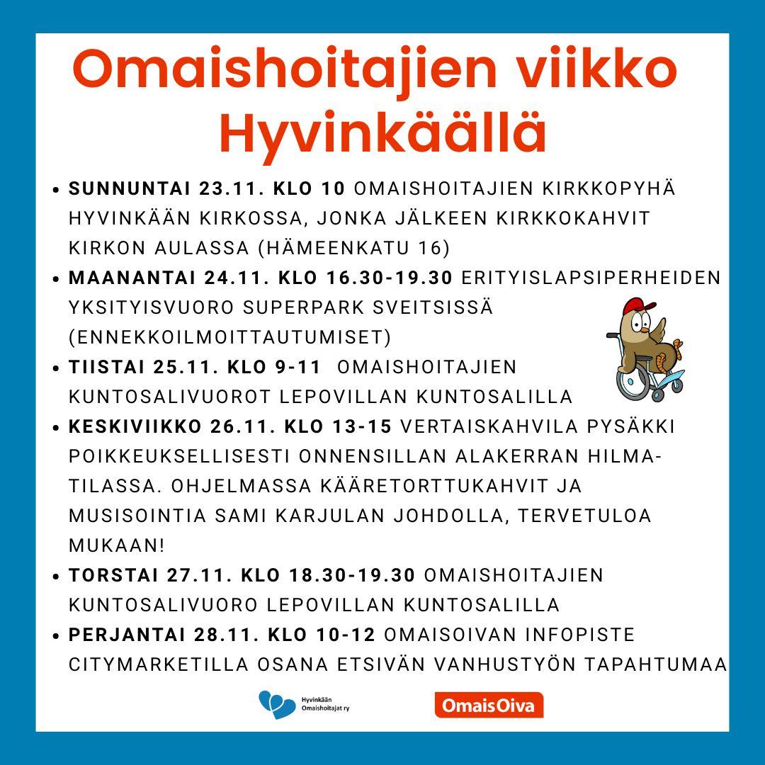 Valtakunnallisen Omaishoitajien viikon ohjelmaa Hyvinkäällä!