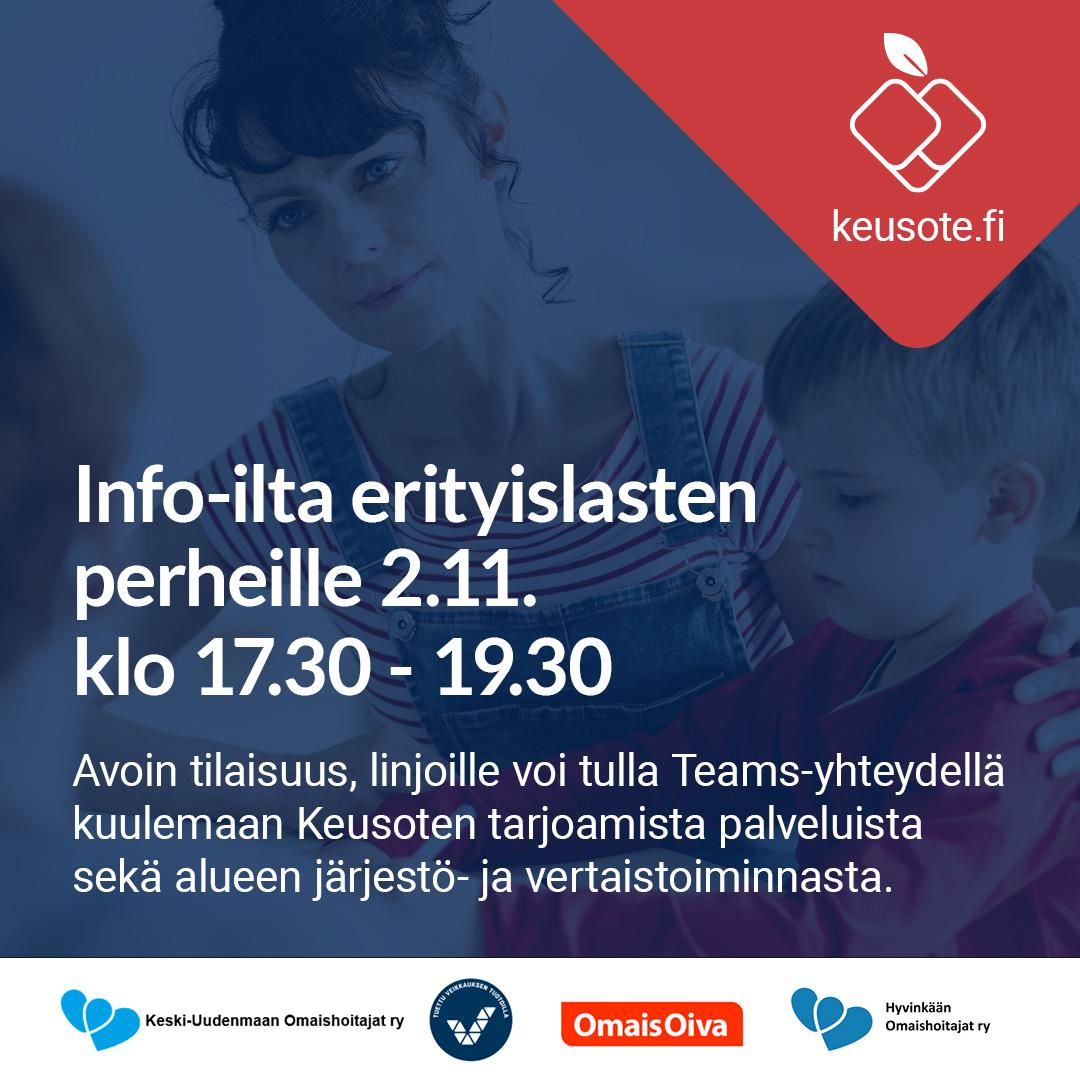 Tervetuloa Keusoten infoiltaan erityistä tukea tarvitsevien lasten vanhemmille torstaina 2.11. klo 17.30-19.30!